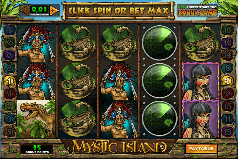 | Mystic Island, seit Oktober im CasinoClub. Der 15 Leiner wird mit Einsatzt von 0,01 Euro gedreht, mit 2 Bonus Runden und eine Freespin Aktion bis zu 30 Spins. Play Now