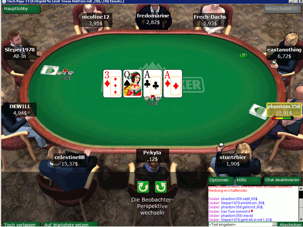Kostenlos 50Euro Poker Bankroll bei Poker 770 Anmelden und satte 50Euro Poker Bankroll ab Kassieren keine Einzahlung erforderlich ( No Deposit Poker Bankroll) der 50Euro Poker Bankroll ist eine Finanzierung vom Poker 770 für neue Gäste des weiteren werden einige Freerolls Angeboten ideal zum Bankroll Builder auf Bau!  | Freeolls zum Bankroll Builder werden ca.alle 2 Stunden ausgeführt mit einen Preis Pool von 100 €uro Buy In ! Poker 770 |