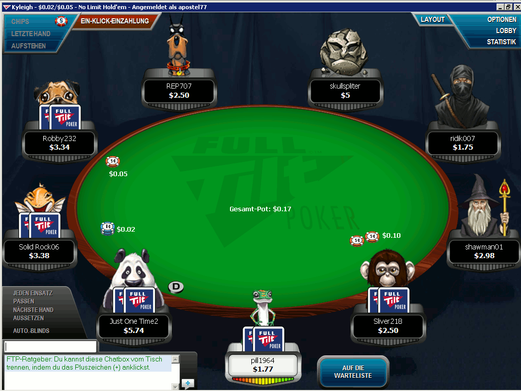 Sit and Go Freeroll vor Qualifizieren über 4Runden 30 FT Punkte Qualifizieren oder 3Runden 30 Cent Qualifizieren 3 Runden Buy IN! Full Tilt Poker |