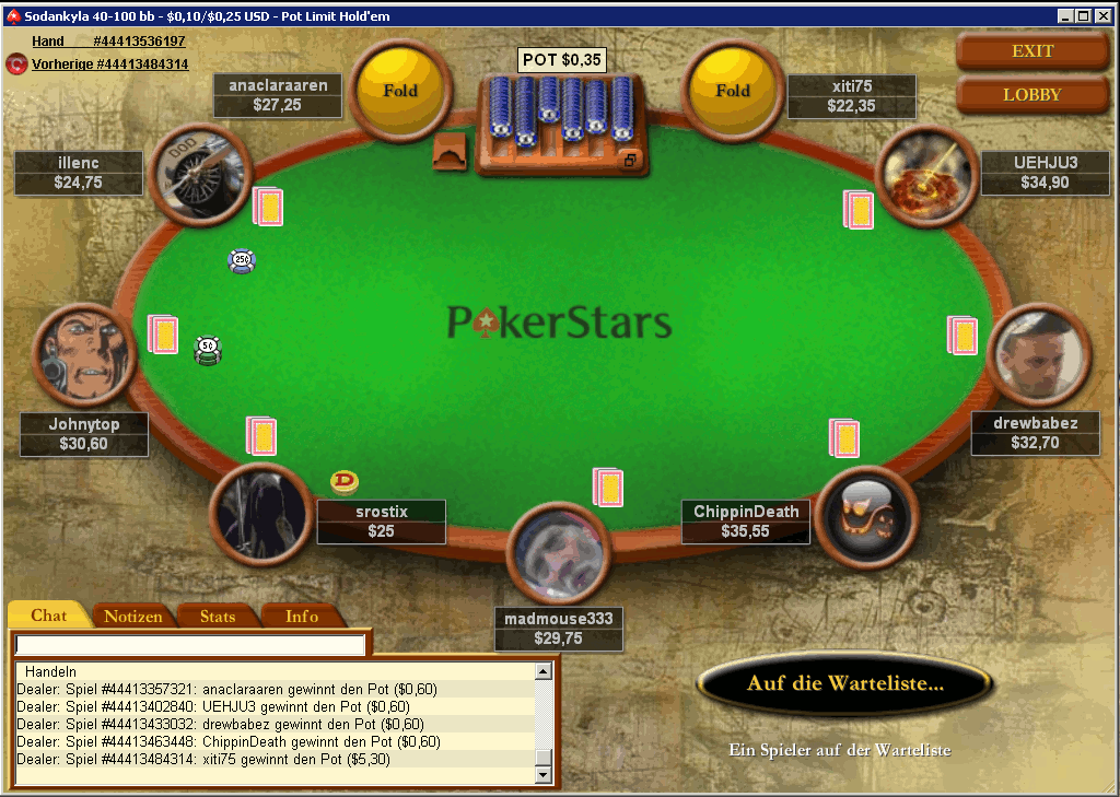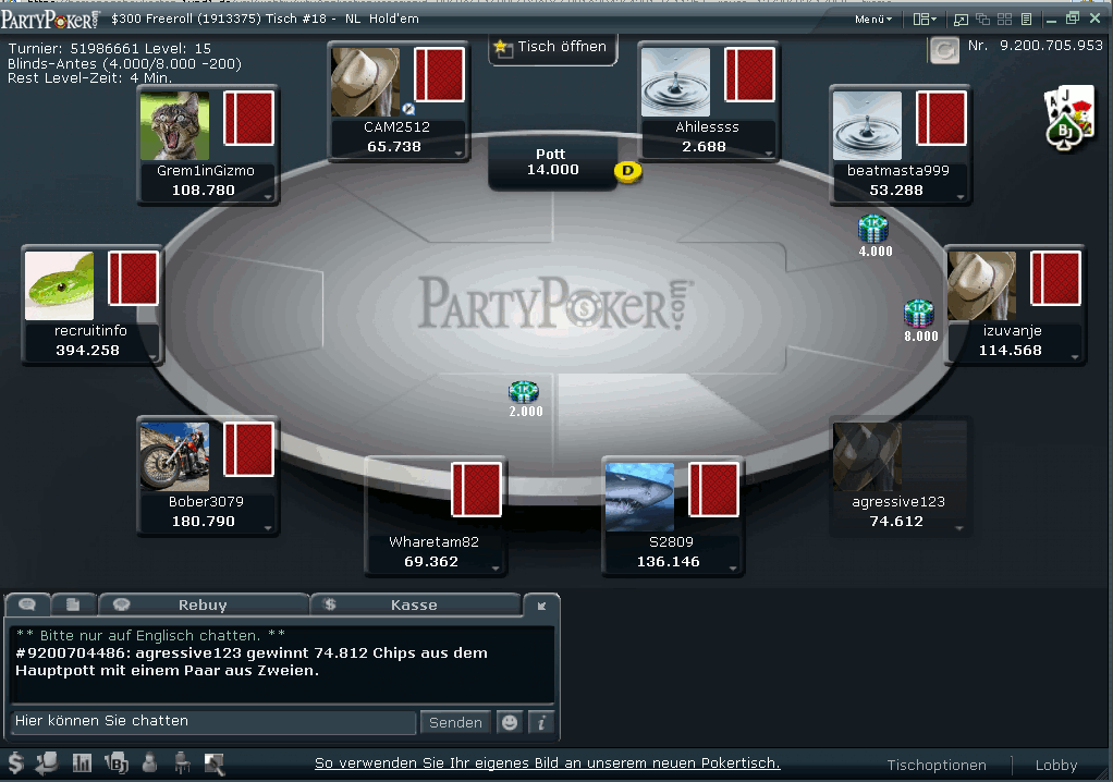 | Kostenlose Teilnahme ( Freeroll ) an : 250$ Freeroll 300$ Freeroll 1000$ Mega Freeroll Wpt über 3 Qualifikations Freerolls Monthly Millions Preis Pool 1000000$ über 3 Qualifikations Freerolls Buy IN! Party Poker Tip und Tricks |