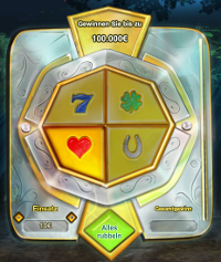 Wähle ein Symbol, Glücks- Sieben, Herz, Kleeblatt oder Hufeisen und natürlich den Einsatz. Danach wird eine Karte mit 2 Feldern Automatisch gezogen, wo jedes ein eigenen Geinn erzielen kann.